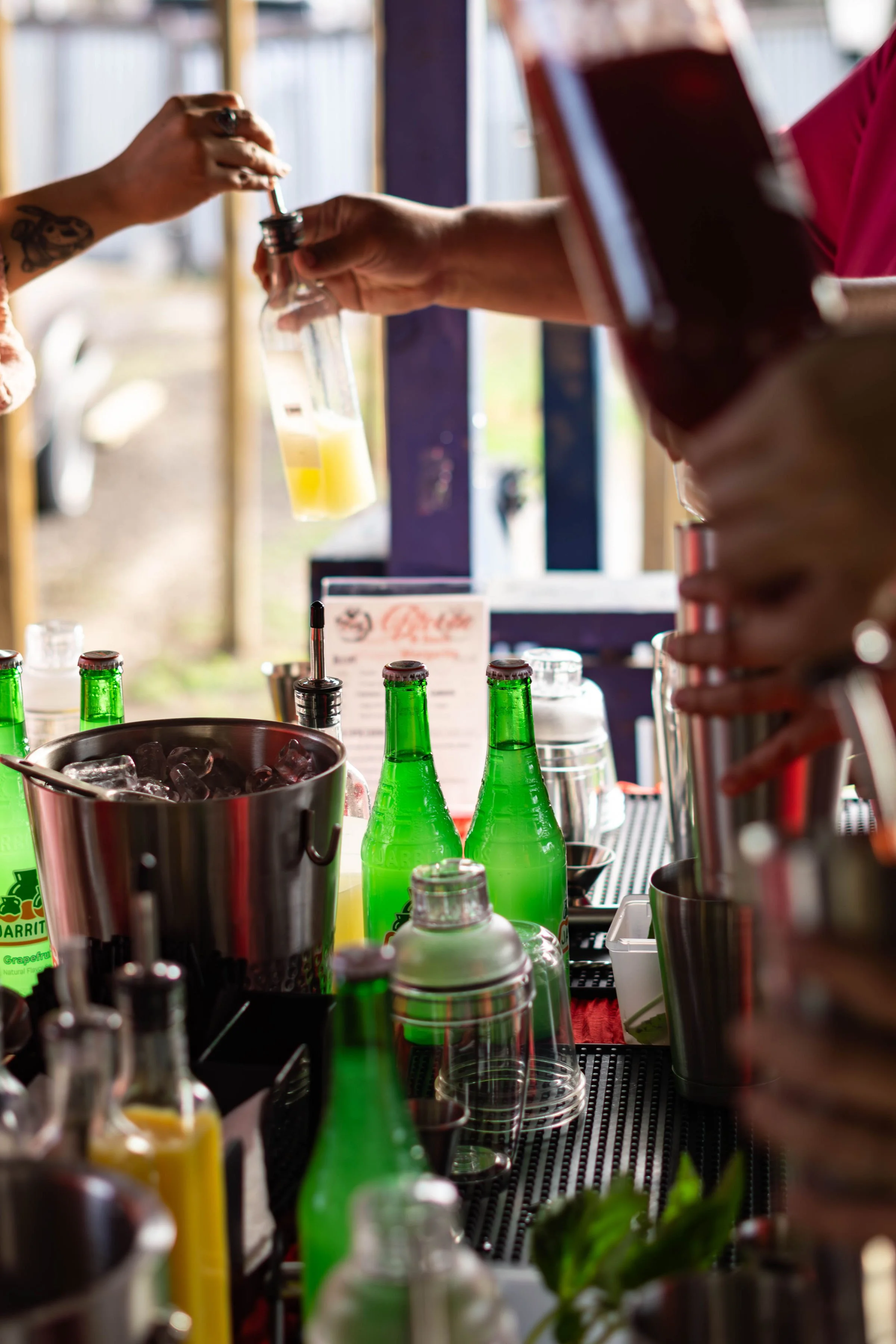 We bring everything needed to run a smooth and professional bar experience, including mixers, garnishes, ice and ice management, disposable barware, straws, tools, and full bar setup.
