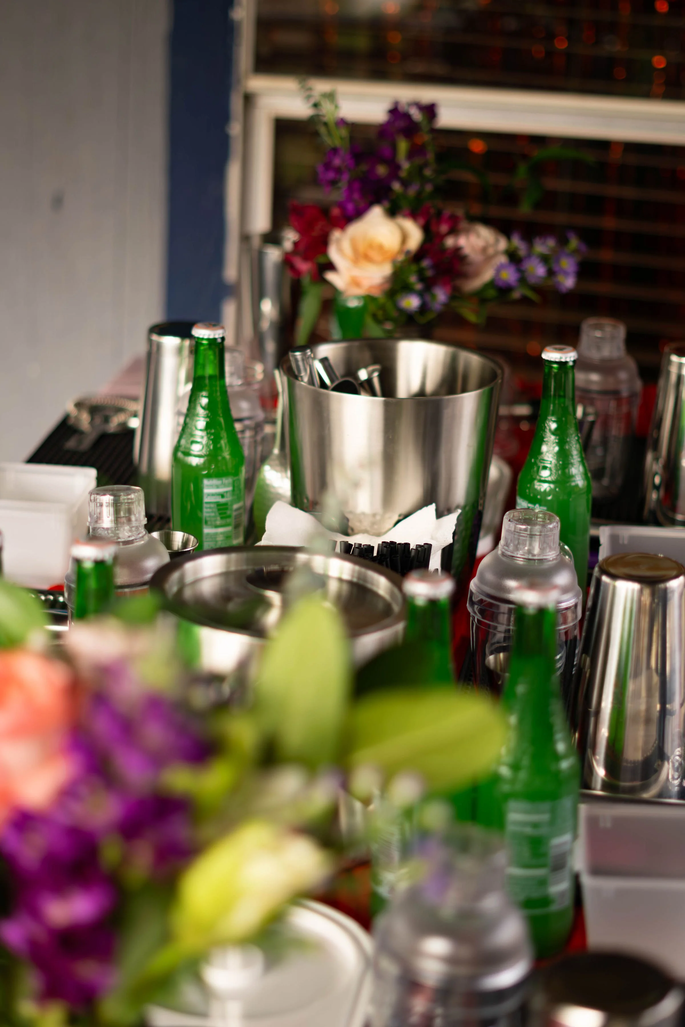 Fresh floral arrangements styled for the bar or class tables to enhance the overall aesthetic and presentation of your experience.